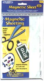 Flexible magnetic sheeting features adhesive on one side. Peel